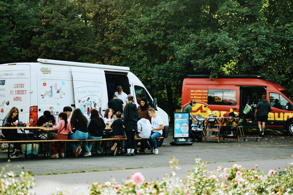 Since 2024, we have been enthusiastically organising the Festival of Mobile Youth Centres, a youth exchange project that has already taken place twice in Berlin and once in Belgium. Together with Roter Baum Berlin, Le Fagotin (Belgium), Curba de Cultură (Romania), Millennium Van and Strauss APS (Italy), we have developed a format that combines mobility, creativity and participation of young people.