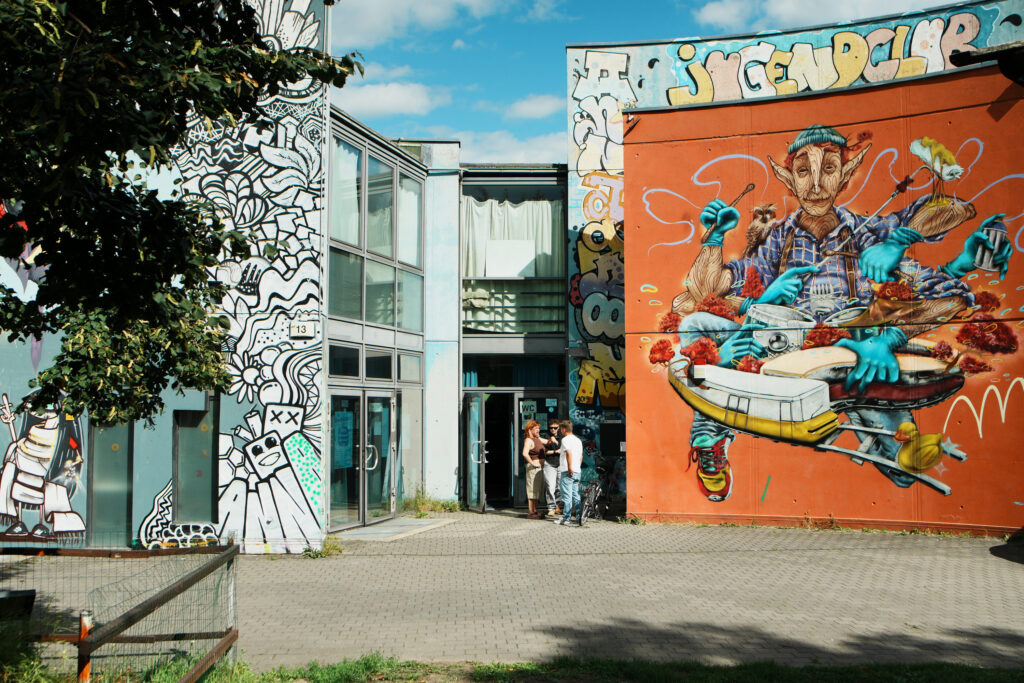 Located in the suburban districts of Berlin, next to a large park, our organization welcomes young people to spend their free time in a safe and open environment. Our youth center provide space where young people can socialize with their peers and engage in creative activities such as graffiti painting, cooking, making music, playing ping-pong and billiard, doing sports every Wednesday, or playing games together.